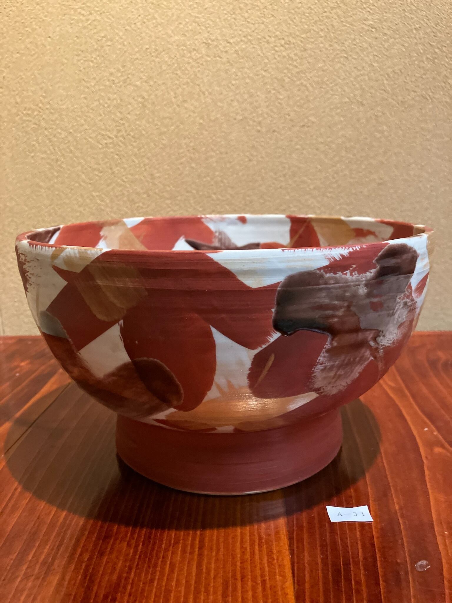 ダイナミックな大きさと大胆な筆づかいの色組赤絵の鉢。