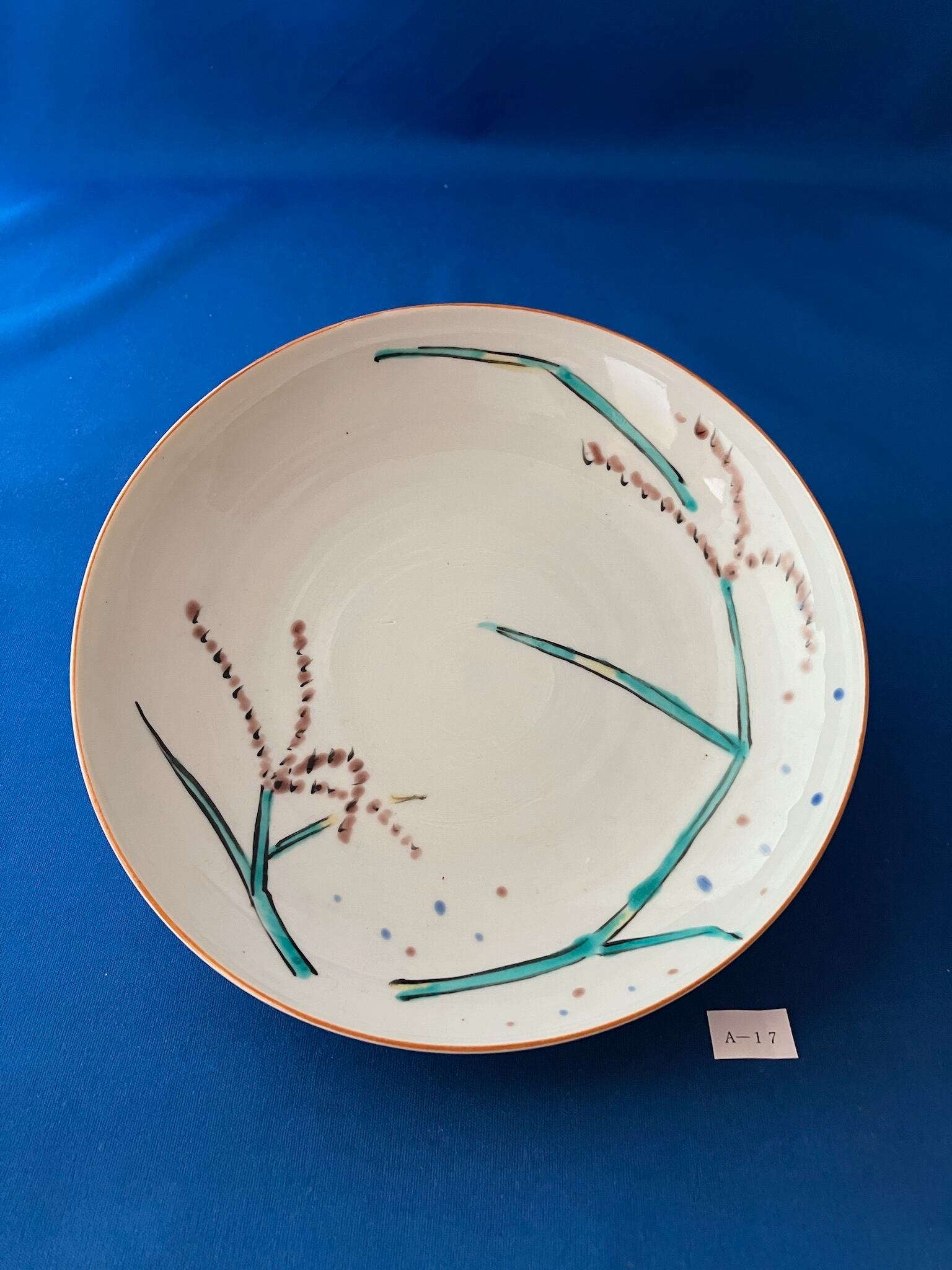 手なりに皿のふちがあがってゆきスプーンが使いやすい皿だが、スープにも。吉備の絵は紫色で人々に顧みられない草とはおもえない優雅さ。